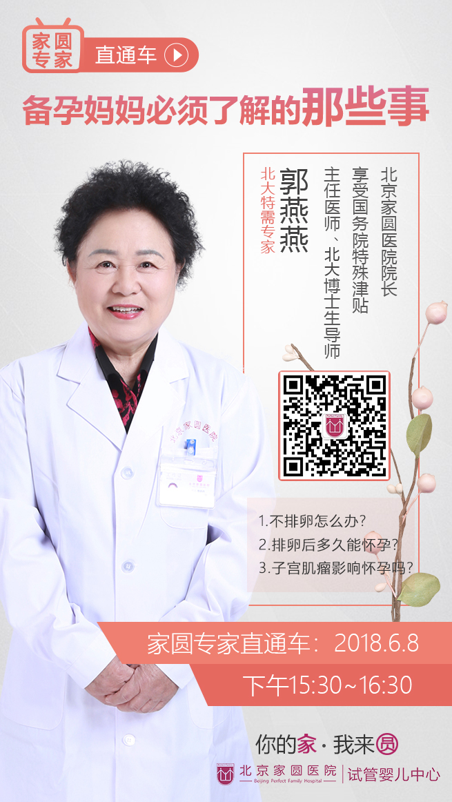 您需要一次多方位的“备孕”解析!6月8日(本周五)下午,15:30~16:30,北大第一医院妇产科特需专家、北大博士生导师、主任医师、国务院特殊津贴获得者、郭燕燕院长,将为您讲解“备孕妈妈必须了解的那些事儿”。