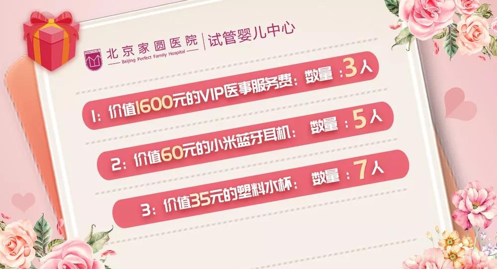 为了感谢大家一直以来对北京家圆试管婴儿医院的支持,本期的家圆直通车,除了有家圆生殖大咖为您解答与“性”福有关的问题外,还准备了丰厚的礼品,送给挚爱的您!本周五下午15:30,家圆生殖专家在线等你呦!