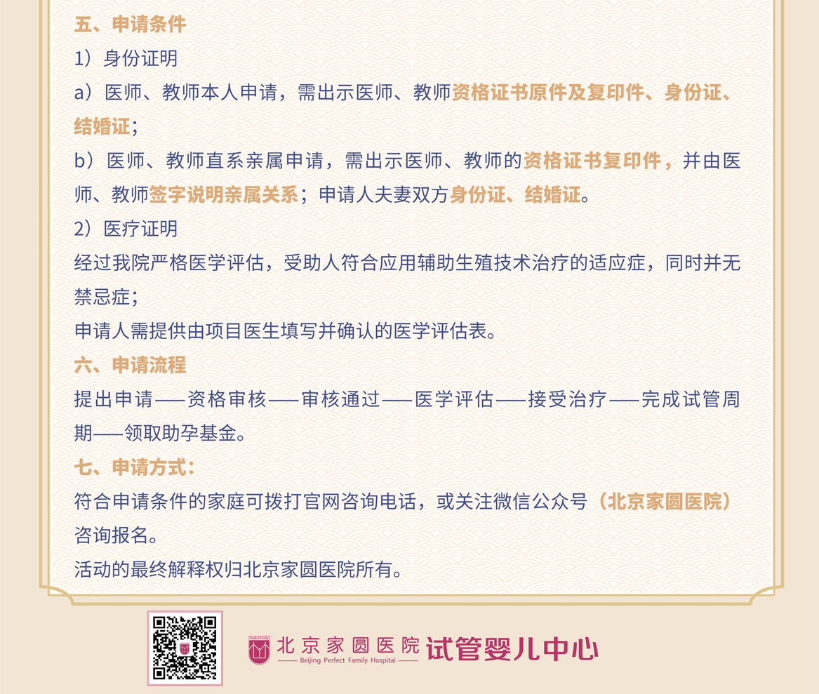 “有了孩子更好,多个孩子更幸福”,秉承“医疗事业,德才先行”的服务理念,为存在生育难题的医生、教师及其直系亲属提供试管婴儿治疗,大力弘扬、主动践行“双师精神”,助力双师家庭实现幸福圆满!